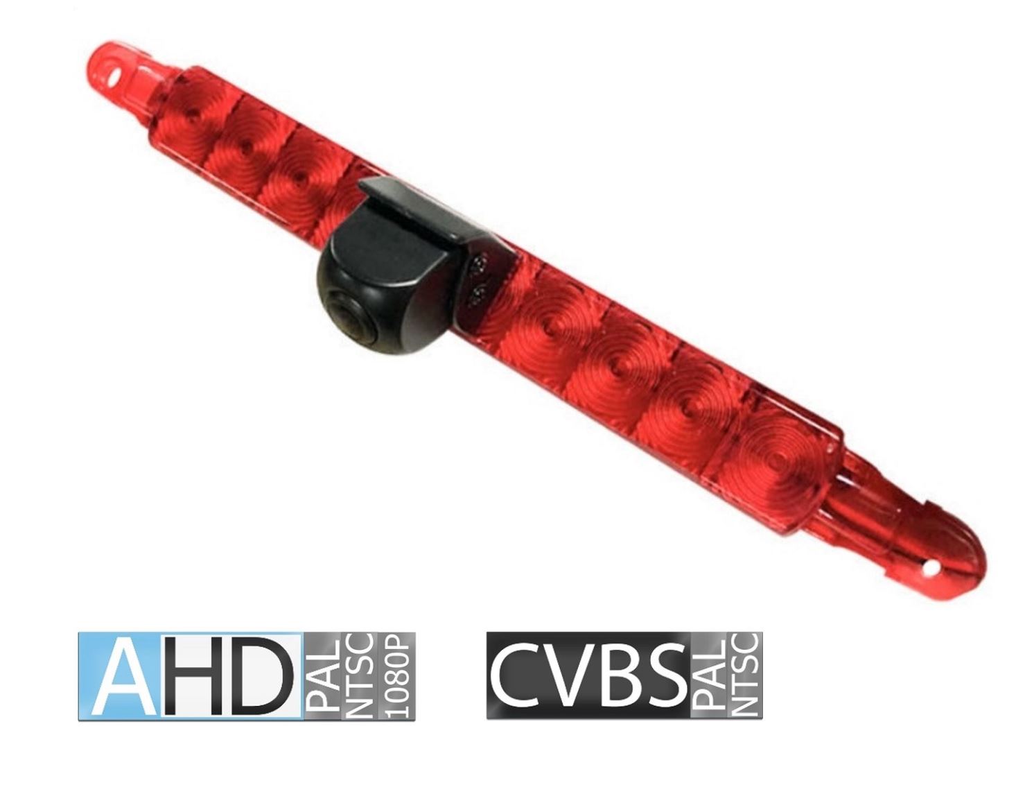 Fahrzeugspezifische dritte Bremsleuchte mit umschaltbarer AHD1080p/CVBS und PAL/NTSC Rückfahrkamera. Einfache Montage durch Austausch der kompletten dritten Bremsleuchte.